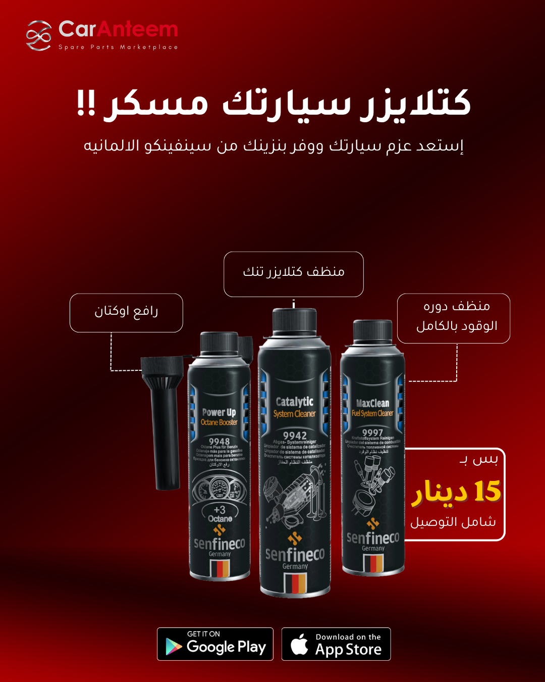 ✨ طريقة استخدام منتجات تنظيف نظام الوقود : 1️⃣ تأكد أن خزان الوقود ممتلئ فوق النصف. 2️⃣ افتح غطاء التانك وأضف عبوة منظف الكتلايزر + رافع الاوكتان. 3️⃣ قم بقيادة السيارة بشكل طبيعي خلال الأيام التالية 🚫 لا تستخدم المنظف في حال خزان البنزين فارغ أو أقل من النصف. 🔁 للمرة التالية: عند انخفاض مستوى البنزين إلى نصف الخزان تقريباً، أضف عبوة منظف دورة الوقود الكامل 📌 يُفضل استخدام المنظفات كل 5,000 - 10,000 كم للحفاظ على أداء المحرك وتقليل الاستهلاك.